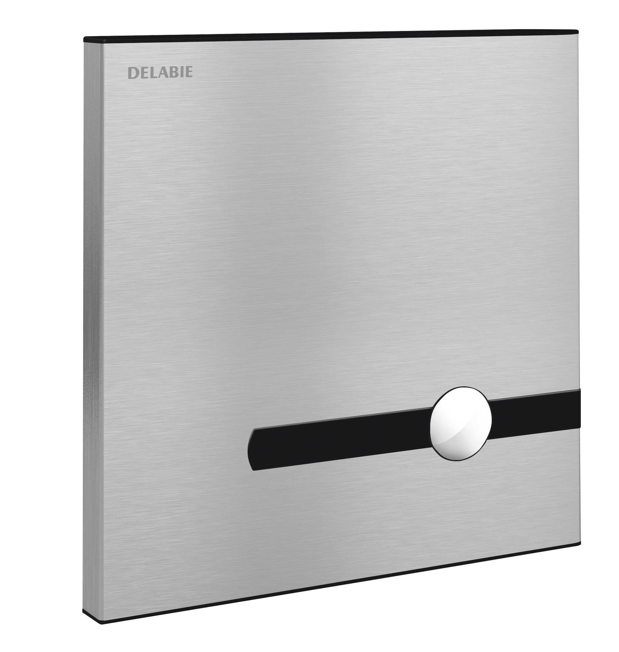 Płyta w wykończeniu ze szczotkowanej stali nierdzewnej z przyciskiem z chromowanego metalu.