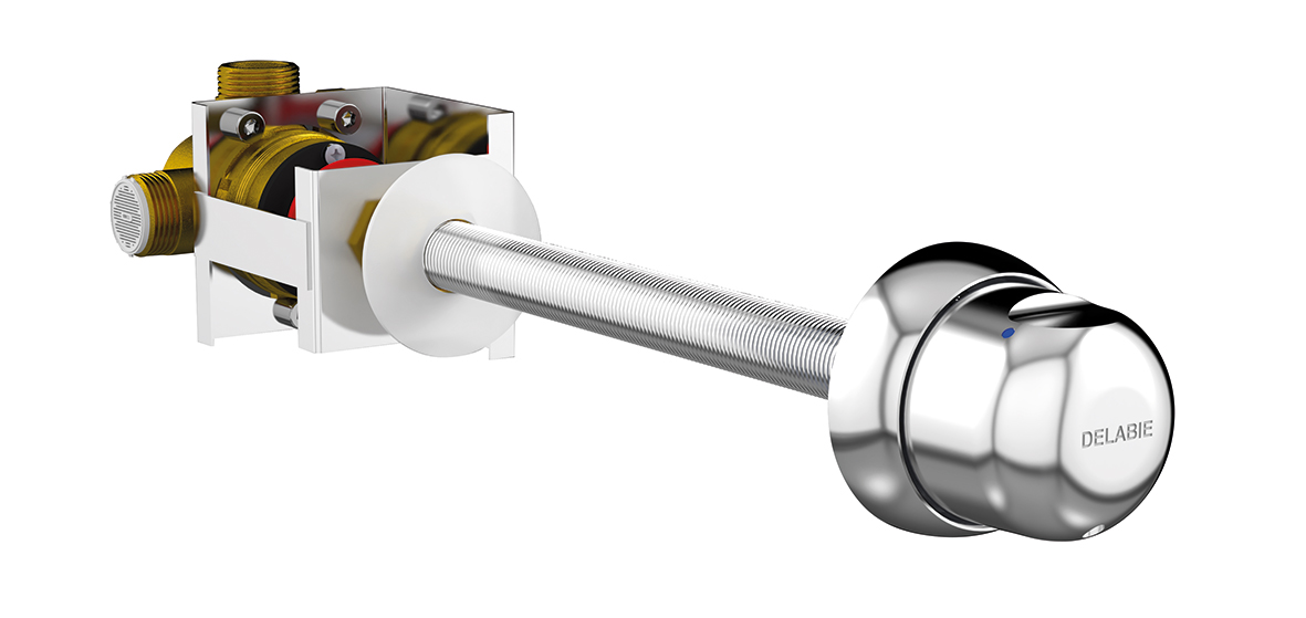 Nr 796210Umywalkowy przycisk zaścienny TEMPOMIX, do montażu w szachcie technicznym. Czas wypływu ~7s.