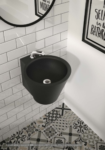 Umywalka MINI BAILA, matowa czerń 121180BK - Zawór elektroniczny BINOPTIC, chromowany 378015 - Korek HIGIENA, chromowany 6110