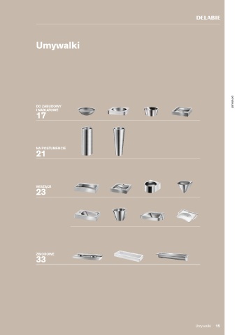 Umywalki UMYWALKI DO ZABUDOWY I NABLATOWE 17 NA POSTUMENCIE 21 WISZĄCE 23 ZBIOROWE 33 Umywalki 15