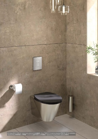 WC wiszące BCN S 110110 - Czarna deska sedesowa SLIM 102419 - Stelaż TEMPOFIX 3 z zaworem czasowym TEMPOFLUX 3 do spłukiwania bezpośredniego 564065DE + 763000 - Uchwyt na papier toaletowy 510083S - Pojemnik ze szczotką do WC i pokrywą 4051S
