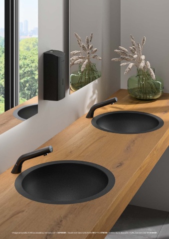 Okrągła umywalka HEMI do zabudowy, matowa czerń 120490BK - Zawór elektroniczny BLACK BINOPTIC 378035 - Elektroniczny dozownik mydła, matowa czerń 512066BK