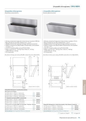 • Wisząca umywalka chirurgiczna z tylną ścianką o wysokości 360 mm. • Wisząca umywalka chirurgiczna z tylną ścianką o wysokości 75 mm.