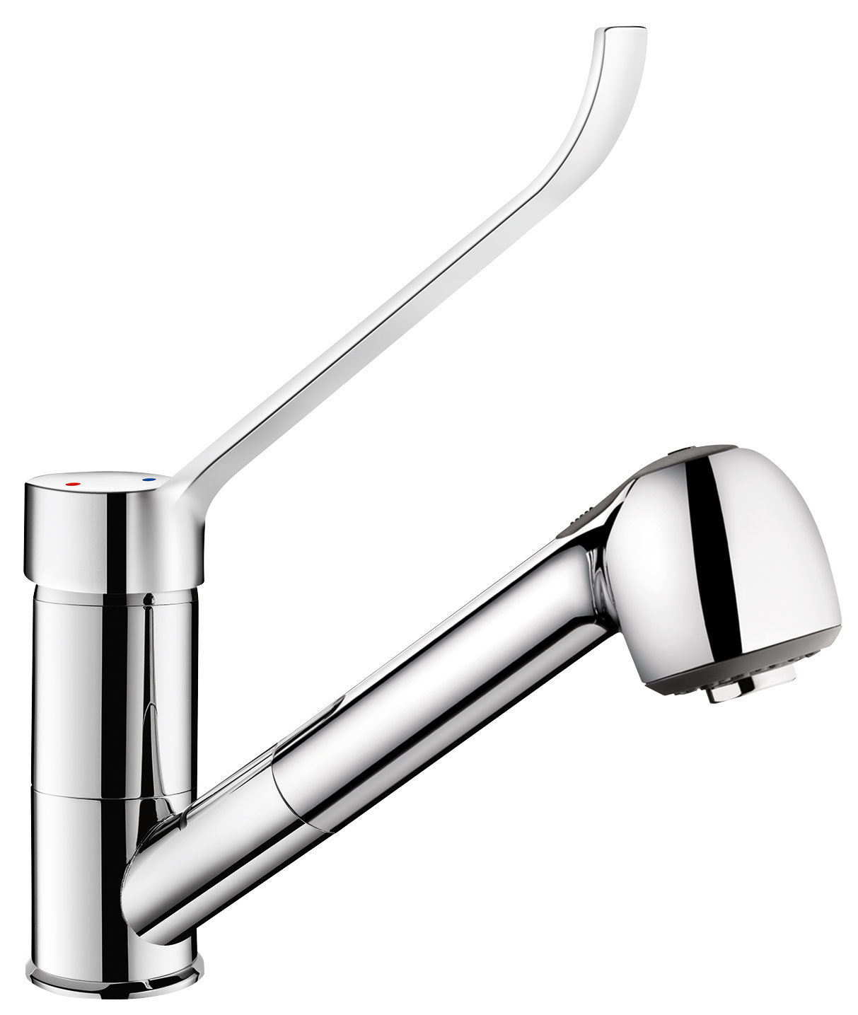 Jednootworowa bateria z wyciąganą słuchawką i ruchomą wylewką H.100 L.200.