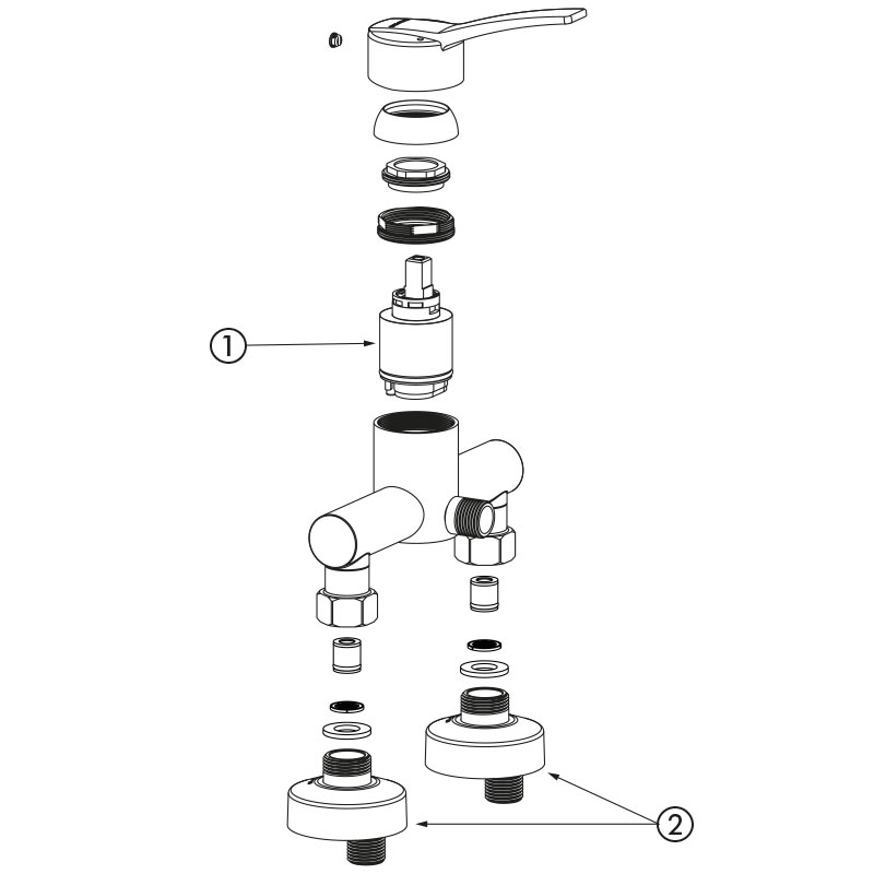 Głowica ceramiczna z regulatorem ciśnienia Ø40 i nastawiony ogranicznik temperatury maksymalnej.