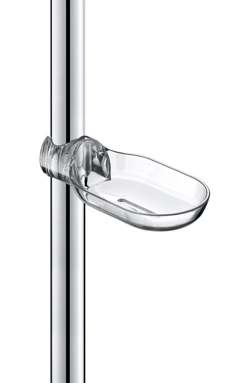 Nr 510120Przezroczysta mydelniczka do poręczy, na wcisk, na suwaku.