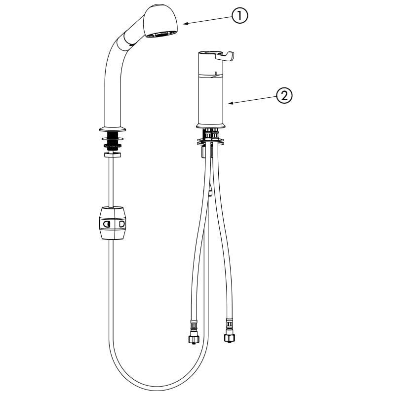 Wyciągana, 2-strumieniowa słuchawka z przełącznikiem strumienia: prosty/deszczowy.
