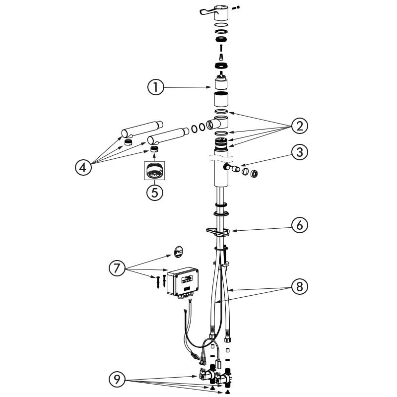 Nr 20870T1Stojąca bateria elektroniczna do umywalki.