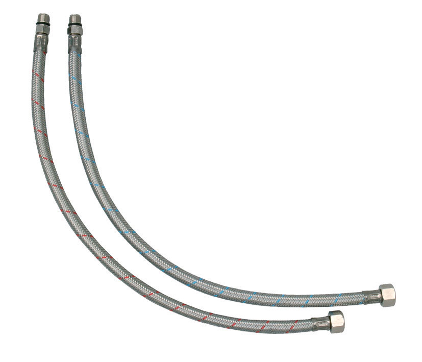 Nr FLEXPEX2Wężyki W3/8" Z10x1 L.420 mm w oplocie ze stali nierdzewnej, z trzonem PEX Ø6, do zasilania armatury sanitarnej.