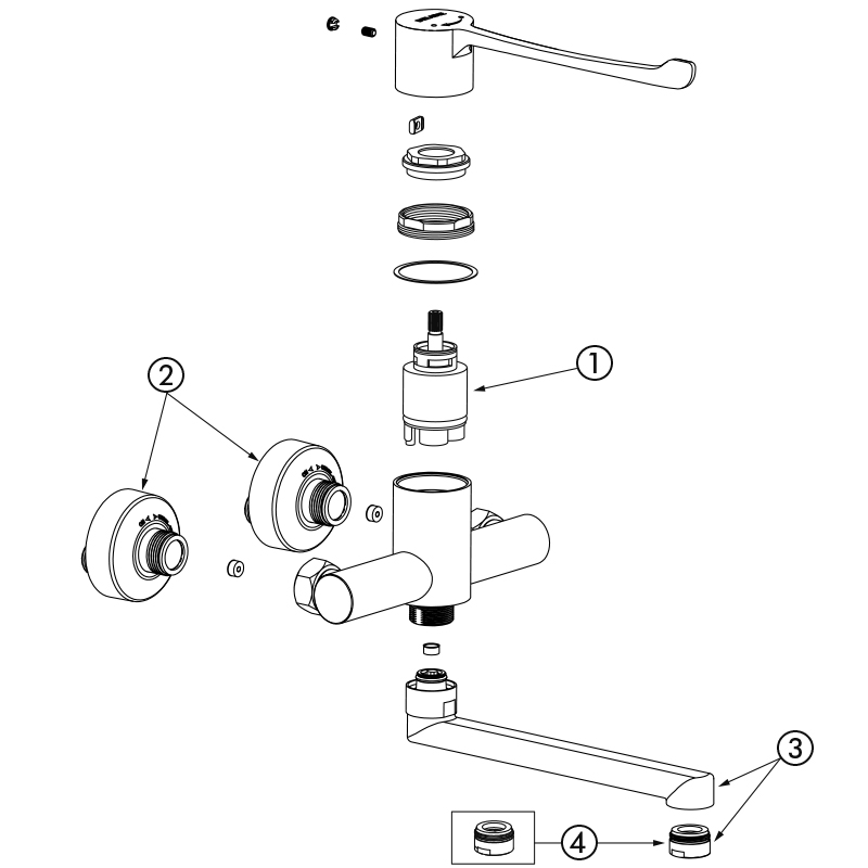 Nr 2437Ścienna, sekwencyjna bateria mechaniczna do umywalki.