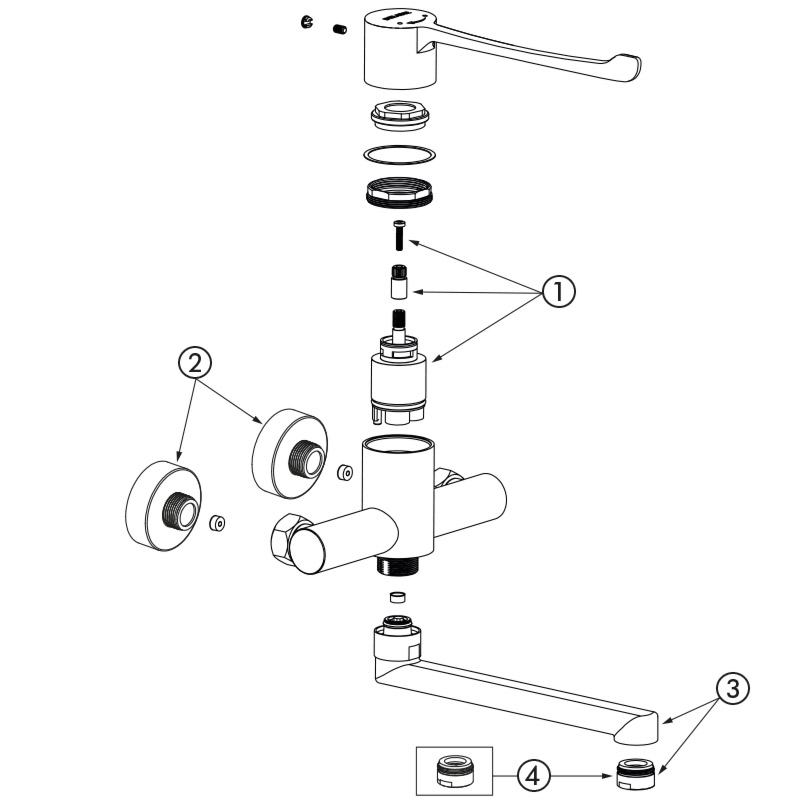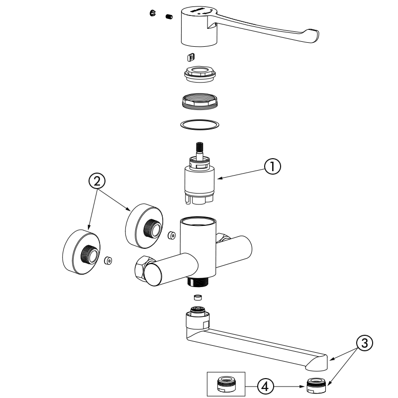 Nr 2437SŚcienna, sekwencyjna bateria mechaniczna do umywalki.