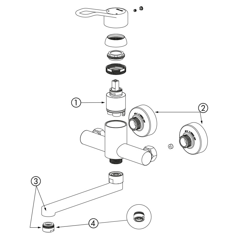 Nr 2445Ścienna bateria mechaniczna do umywalki.