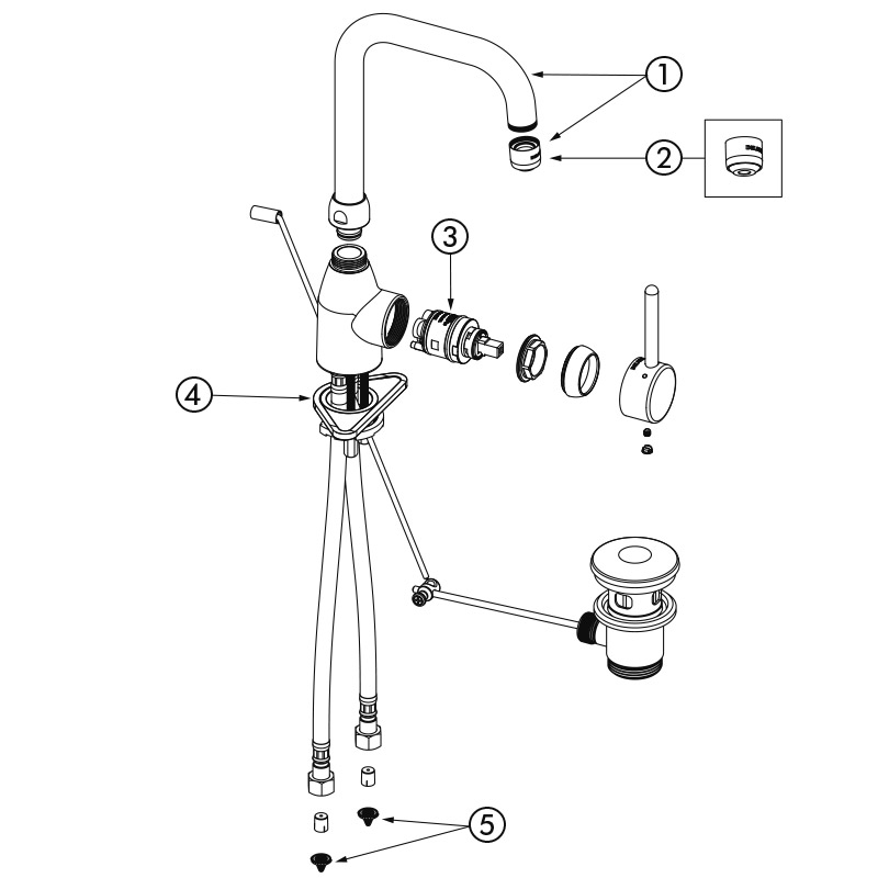 Nr 2506T1Stojąca bateria mechaniczna do umywalki.