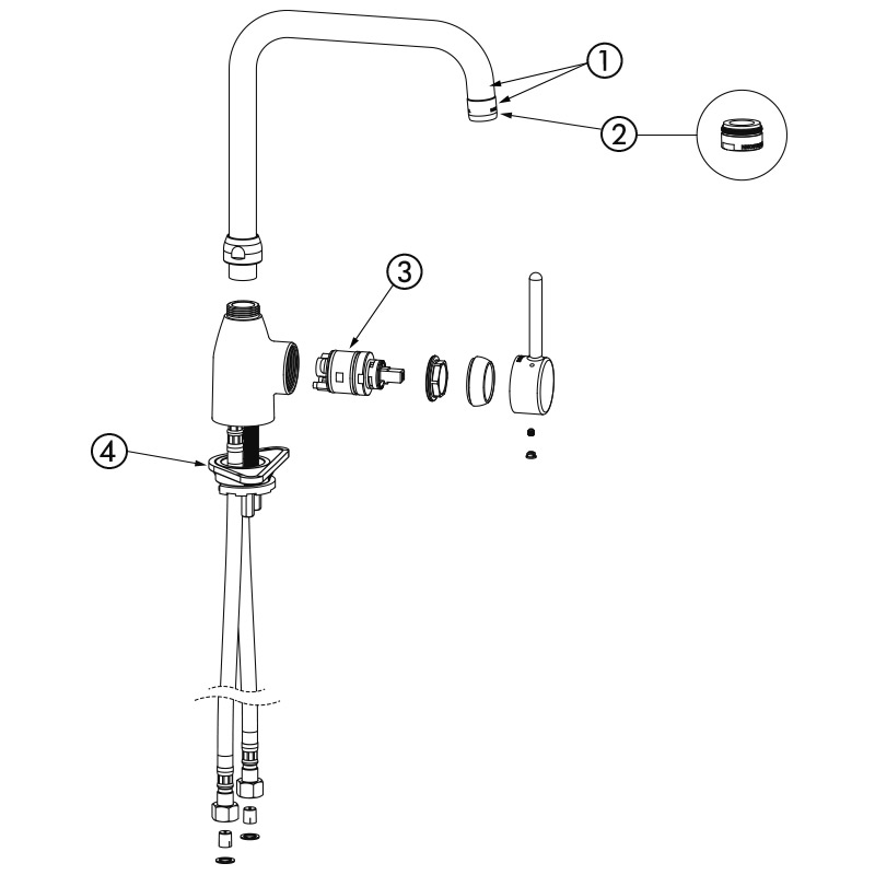 Jednootworowa bateria mechaniczna z ruchomą wylewką H.220 L.200 wyposażoną w higieniczne wyjście przystosowane do instalacji filtra BIOFIL.