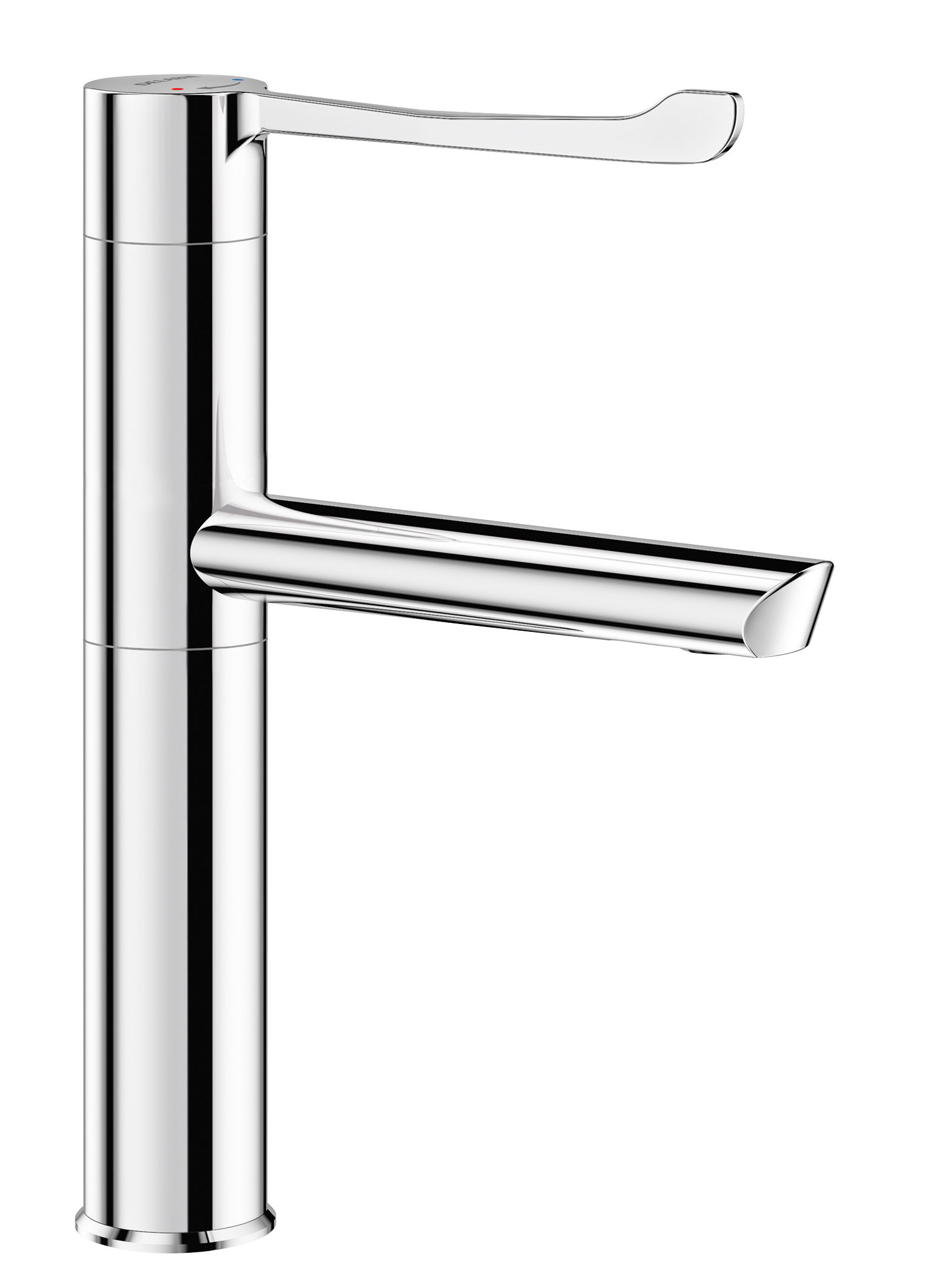 Możliwość przeprowadzenia w łatwy sposób dezynfekcji termicznej, bez konieczności demontażu uchwytu ani odcinania dopływu wody zimnej.