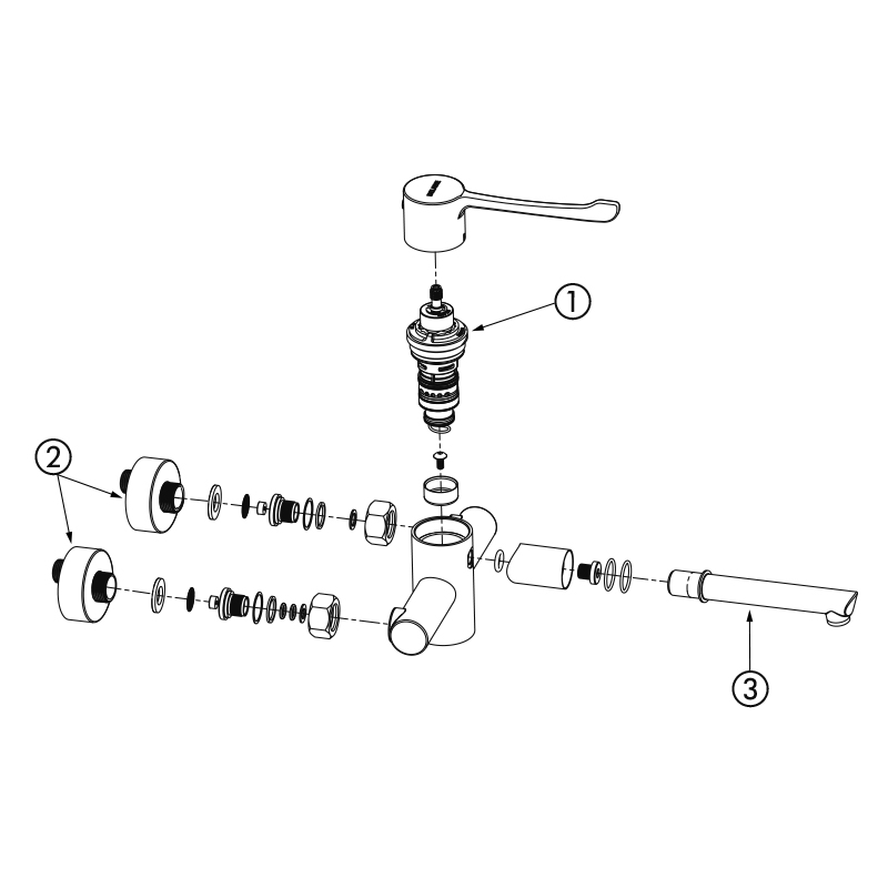 Sekwencyjna, ścienna bateria termostatyczna SECURITHERM do umywalki