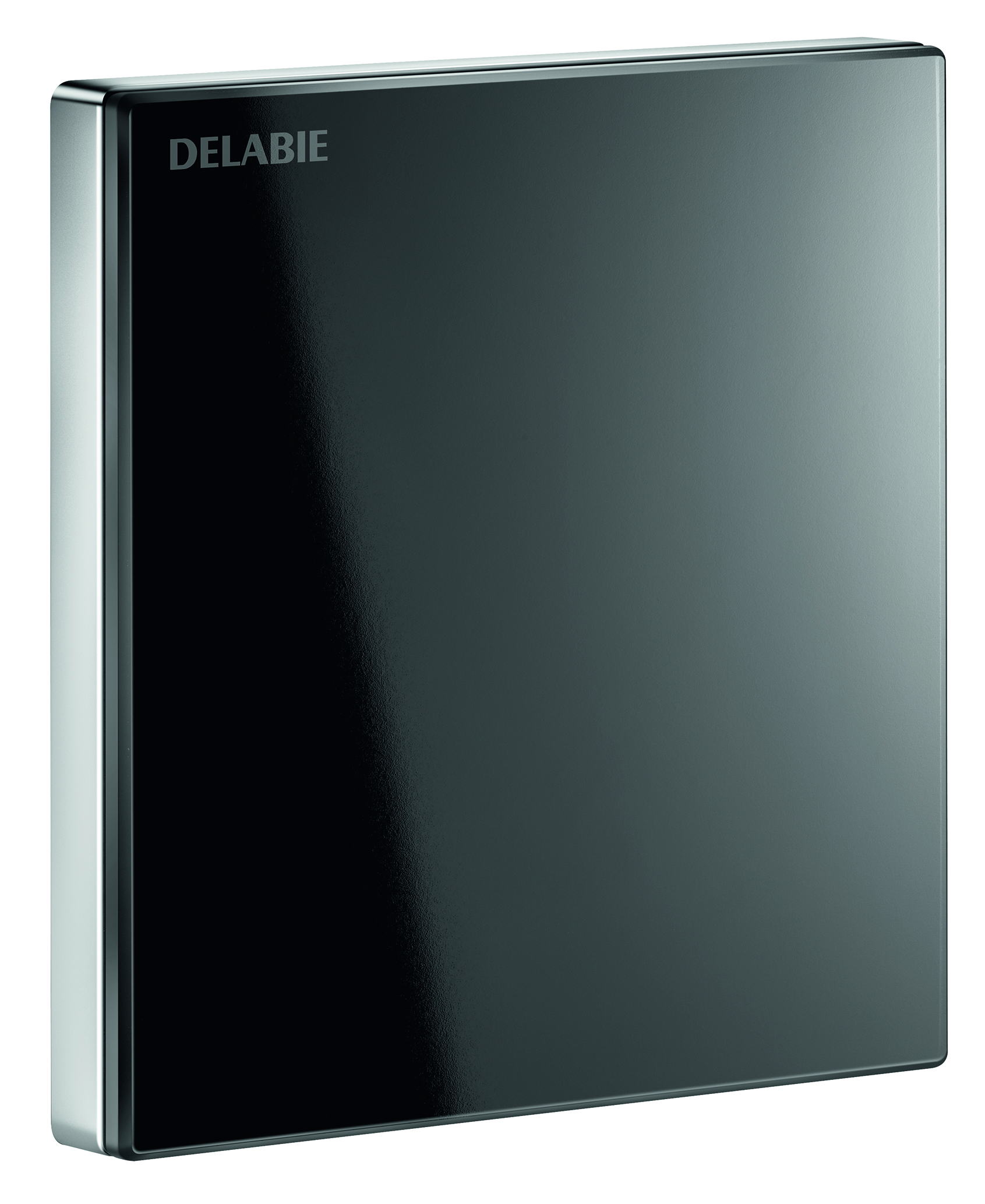 Czarna płyta uruchamiająca 145 x 145 mm ze szkła hartowanego z wbudowaną elektroniką.