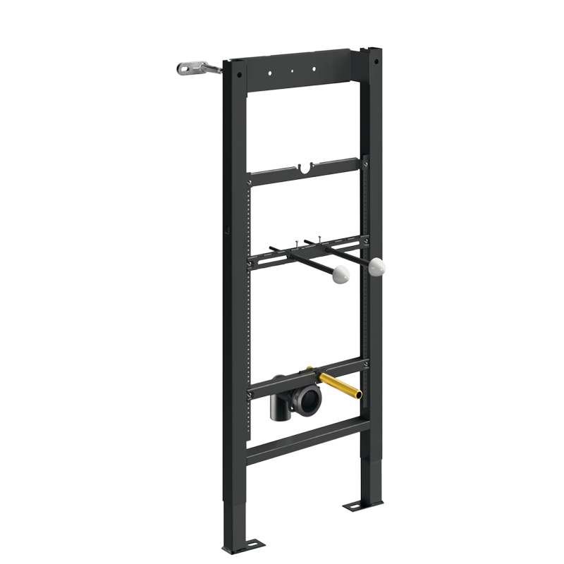 Stelaż ze stali pokrytej czarnym epoksydem do instalacji podtynkowej.