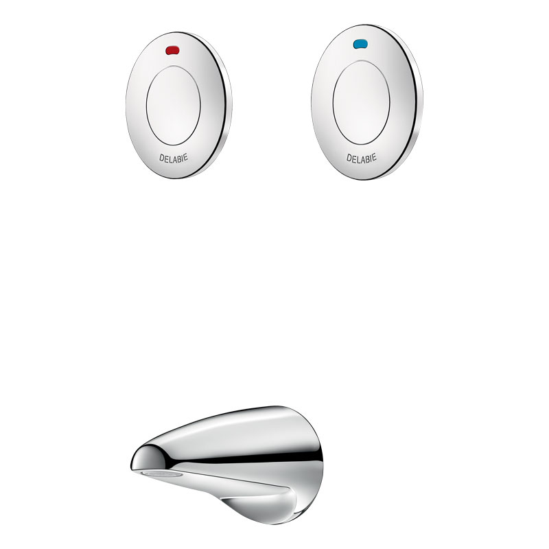 2 przyciski: 1 przycisk na wodę zmieszaną i 1 przycisk na wodę zimną.