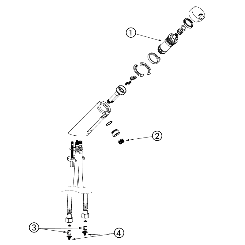 Nr 794100Stojąca bateria czasowa do umywalki, uruchamiana przyciskiem-pokrętłem.