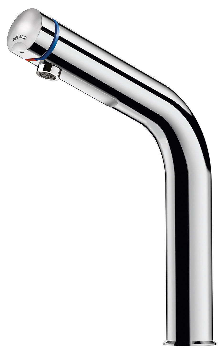 Nr 794120Stojąca, czasowa bateria umywalkowa na przycisk, który jest jednocześnie pokrętłem do regulacji temperatury.