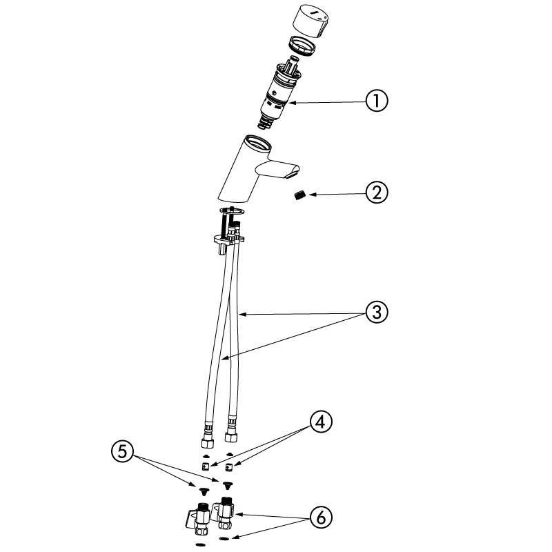 Nr 795000Stojąca bateria czasowa do umywalki, uruchamiana przyciskiem-pokrętłem.