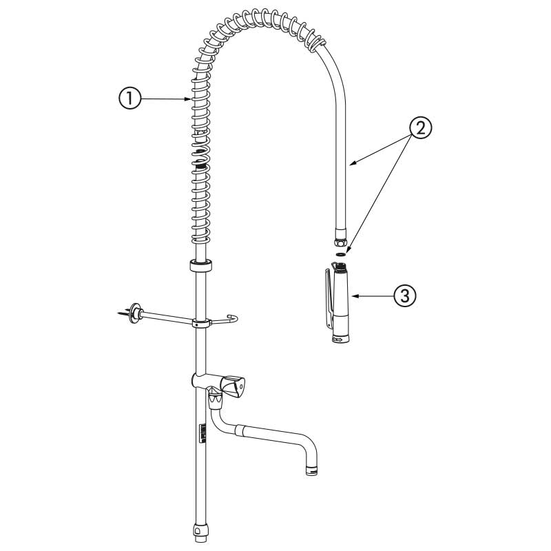 Nr 433220Biały zestaw do mycia wstępnego bez armatury przystosowany do intensywnego używania w kuchni profesjonalnej.