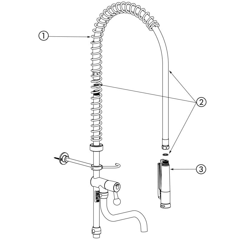 Nr 433622Czarny zestaw do mycia wstępnego bez armatury przystosowany do intensywnego użycia w kuchni profesjonalnej.