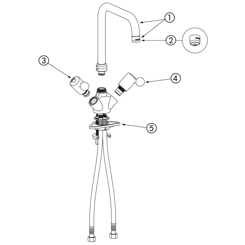 Nr 5640T2Stojąca bateria jednootworowa z ruchomą wylewką rurową H.195 L.200.