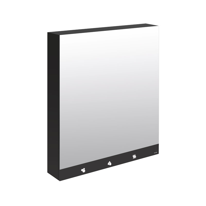 Szklane lustro o grubości 4 mm i panel z czarnego szkła z podświetlanymi piktogramami.