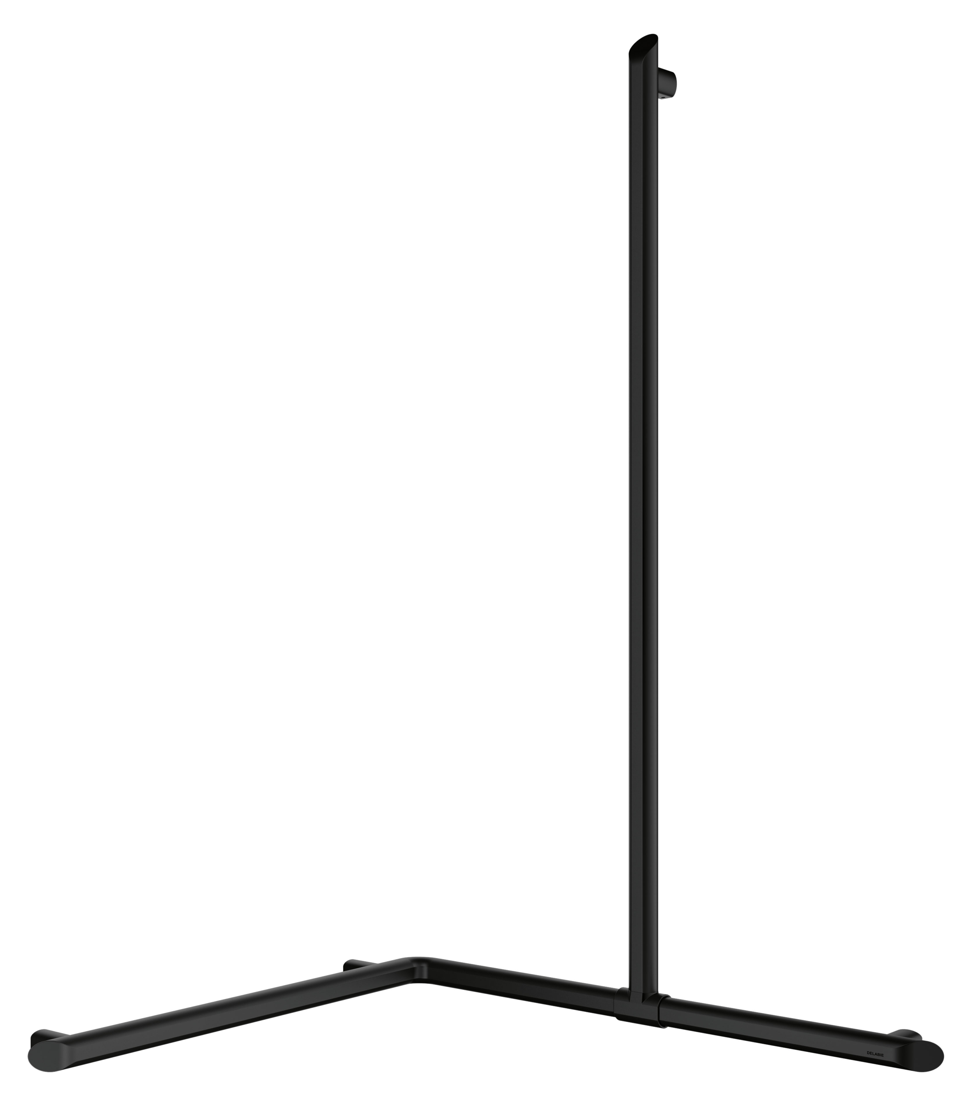 Nr 511949BKNarożna poręcz natryskowa Be-Line® Ø35 z przesuwnym drążkiem pionowym.