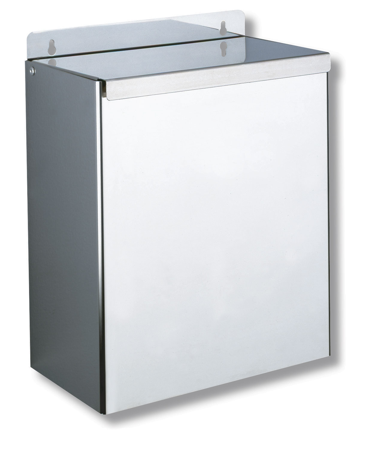 Nr 462Prostokątny, ścienny pojemnik z Inoxu na ręczniki papierowe i zużyte papiery.