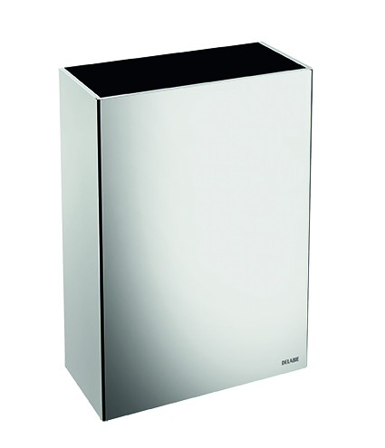 Nr 510467PŚcienny, prostokątny pojemnik z Inoxu na zużyte ręczniki papierowe i papier.