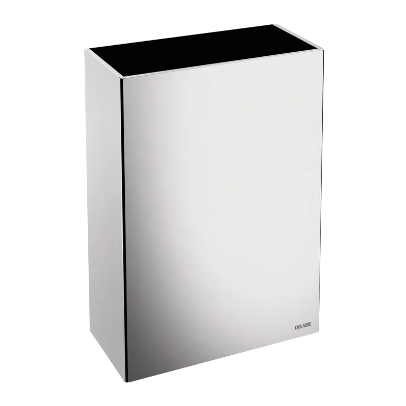 Ścienny, prostokątny pojemnik z Inoxu na zużyte ręczniki papierowe i papier.