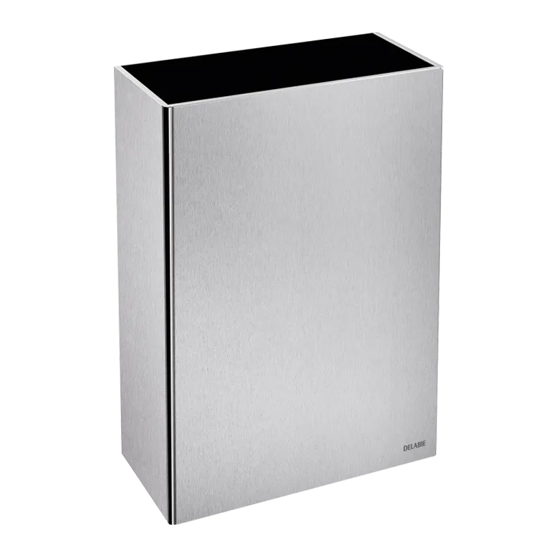 Nr 510467SŚcienny, prostokątny pojemnik z Inoxu na zużyte ręczniki papierowe i papier.