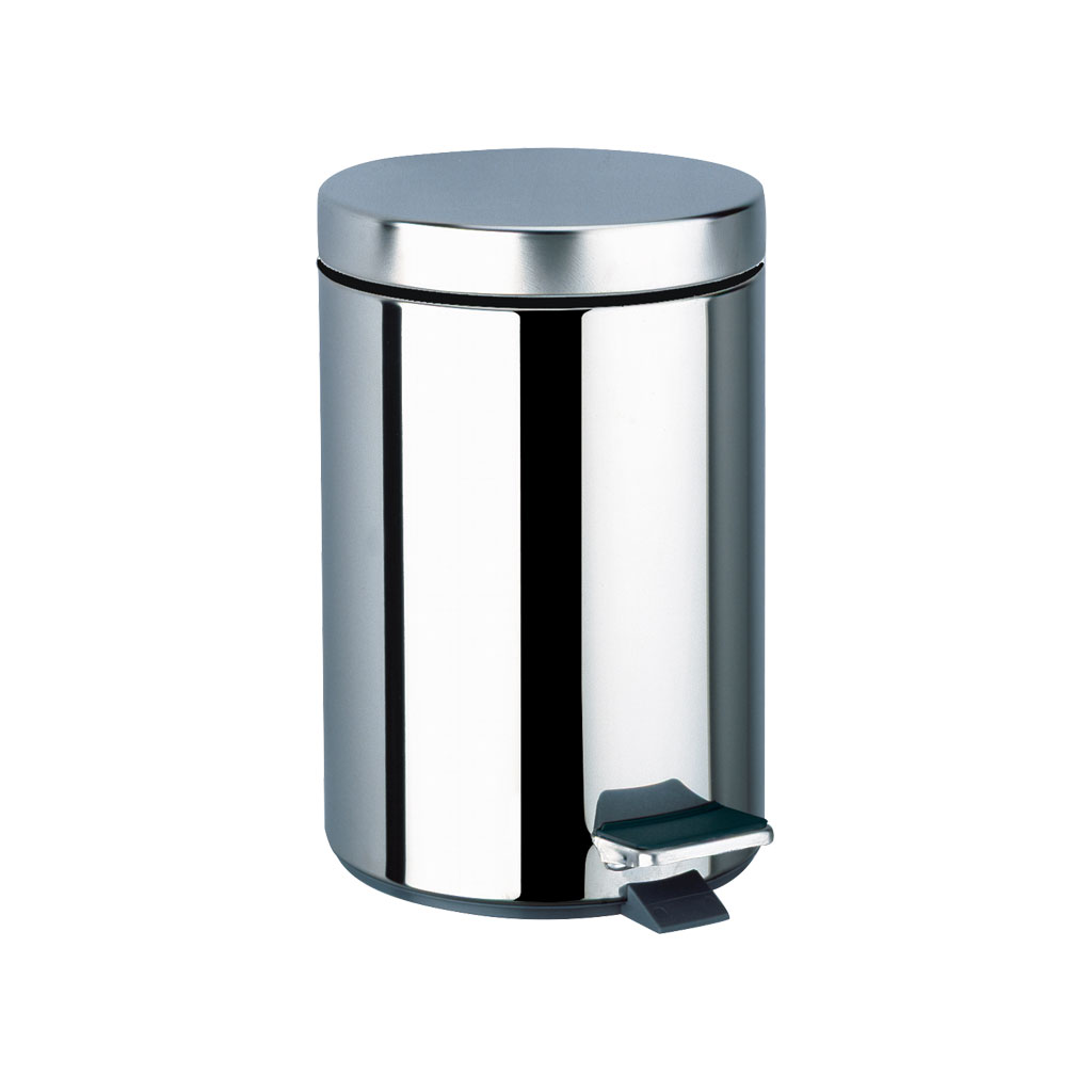 Okrągły kosz na odpady z przyciskiem nożnym, Inox, 3 litry