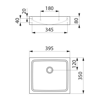 Nr 120830BKUmywalka mocowana na ścianie, 395 x 350 mm.