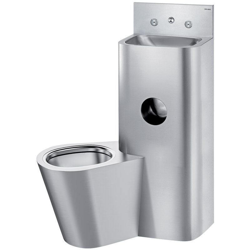 WC jest całkowicie przyspawane do umywalki, brak śrub: ułatwia to czyszczenie i zapobiega ukrywaniu przedmiotów.