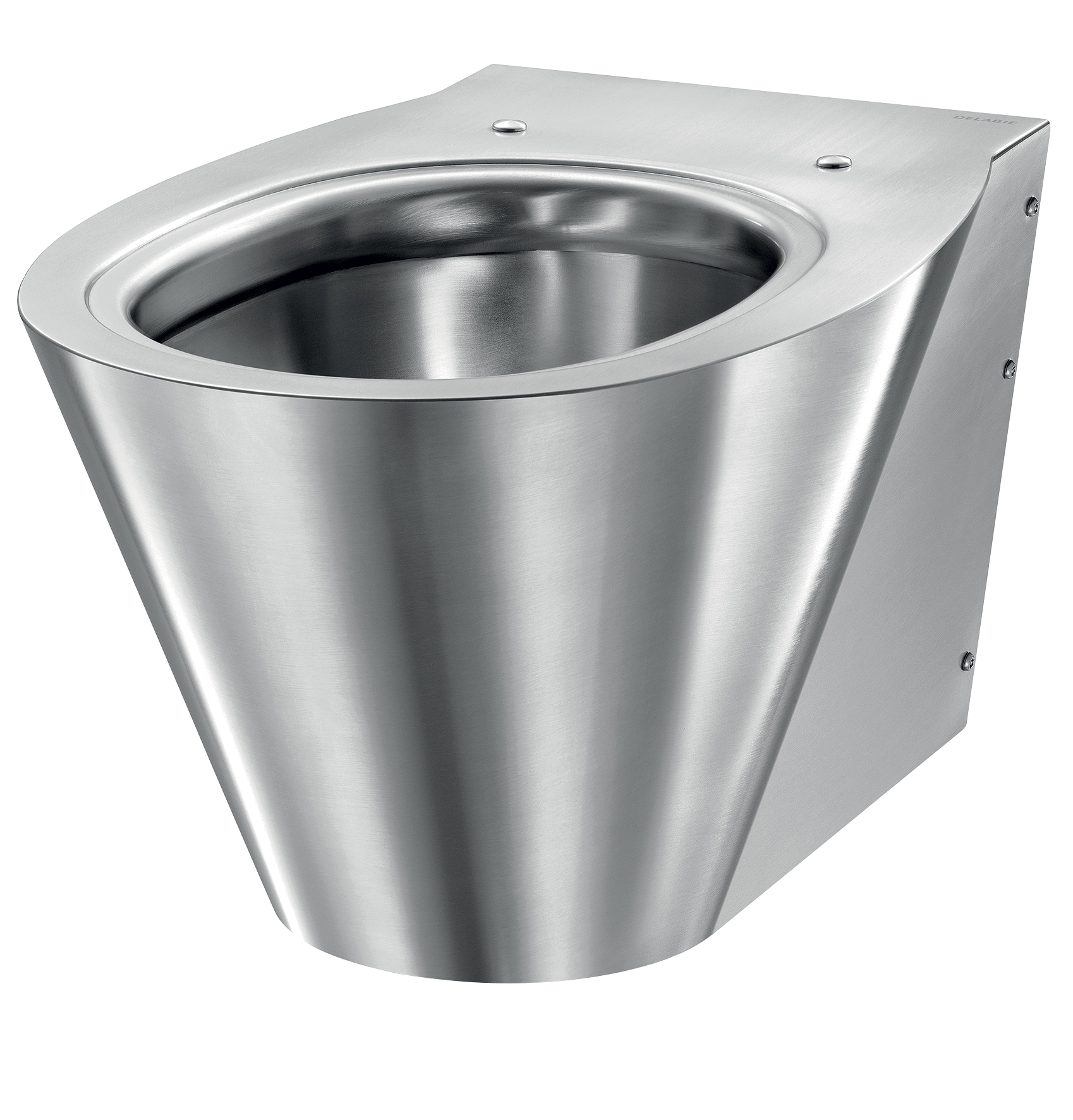 Otwory do zamocowania deski sedesowej. Dostarczana z zaślepkami z Inoxu do użytku bez deski sedesowej.